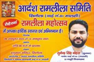 क्षेत्रीय पार्षद सुमेंद्र सुशांत सिंह बोहरा ने बताया कि आदर्श रामलीला महोत्सव न केवल धार्मिक आयोजन है, बल्कि यह स्थानीय समाज के लिए आस्था, एकता और सांस्कृतिक गौरव का प्रतीक बन चुका है। राधा-कृष्ण की दिव्य लीला ने श्रद्धालुओं के मन में भक्ति की ज्योति प्रज्वलित कर दी, और सिनोला की धरती प्रेम, संगीत और अध्यात्म से गूंज उठी।