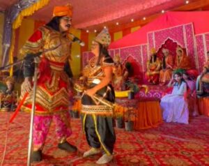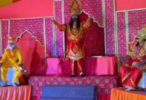 इसके पश्चात मंच पर हुआ रावण और वानासुर का संवाद, जिसमें रावण का तेज, गर्व और शक्ति का प्रदर्शन देखते ही बनता था। यह दृश्य एक ओर नाट्य कौशल का अद्भुत उदाहरण रहा, वहीं दूसरी ओर यह अहंकार के परिणाम का गूढ़ संदेश भी देता दिखाई दिया।