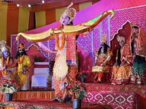 मंच पर कलाकारों ने राधा-कृष्ण के दिव्य प्रेम की लीलाओं का ऐसा सजीव चित्रण प्रस्तुत किया कि पूरा पंडाल भक्ति में सराबोर हो उठा। रासलीला, गोवर्धन पूजा और माखन चोरी जैसे प्रसंगों ने दर्शकों को मंत्रमुग्ध कर दिया। संगीत, नृत्य और संवादों की सुंदर प्रस्तुति ने वातावरण को भक्तिमय बना दिया।