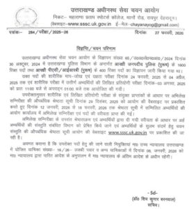 12 जनवरी, 2026 से 18 फरवरी, 2025 तक अभ्यर्थियों के अभिलेखों की जांच एवं पदों की वरीयता पूछी गई। अभिलेखों के जांच के उपरांत श्रेष्ठताक्रम एवं अभ्यर्थियों द्वारा दी गयी वरीयता के आधार पर अर्ह अभ्यर्थियों की औपबंधिक श्रेष्ठता सूची आयोग की वेबसाइट www.sssc.uk.gov.in पर प्रकाशित कर दी गई है।