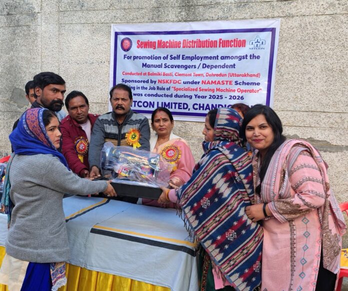 देहरादून। राजधानी देहरादून के टर्नर रोड वार्ड स्थित सी-20 क्षेत्र में आयोजित कार्यक्रम में स्वरोजगार को बढ़ावा देने के उद्देश्य से सिलाई मशीन वितरण कार्यक्रम का आयोजन किया गया। यह कार्यक्रम केंद्र सरकार की NAMASTE योजना के अंतर्गत राष्ट्रीय सफाई कर्मचारी वित्त एवं विकास निगम (NSKFDC) द्वारा प्रायोजित तथा NITCON Limited द्वारा संचालित किया गया। कार्यक्रम के मुख्य अतिथि धरमपुर विधानसभा के वरिष्ठ कांग्रेस नेता रमेश कुमार मंगू रहे। उनके साथ क्षेत्रीय पार्षद श्रीमती कुसुम वर्मा भी उपस्थित रही। कार्यक्रम में स्थानीय नागरिकों एवं लाभार्थियों ने सहभागिता की।